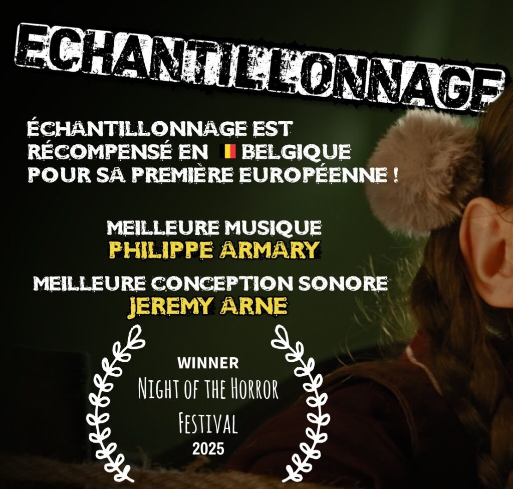 C’est quand même la classe !! MEILLEUR MUSIQUE : Philippe ARMARY – Sur un film de Jérémy ARNÉ : “ECHANTILLONNAGE” qui obtient également la meilleure conception sonore sur une PREMIÈRE EUROPÉENNE en Belgique !